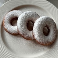 Roll out the dough to a thickness of 5–6 mm and cut out rings using various sized cutters.