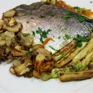 Dorado Baked on a Vegetable Bed in a Paper Envelope
