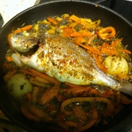 Dorado baked with vegetables