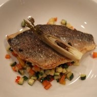 Plate the sauté, place the dorado on top, and garnish with the sauce around.