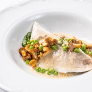 Sauté the chanterelles in a pan with butter for 2 minutes, then add the green peas and stock.