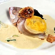 For the sauce, finely chop the leek and sauté it in wine, add olives and capers, and purée.