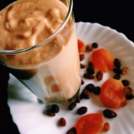 Once the dried apricots and raisins have softened, blend them with the other ingredients in a blender until smooth.