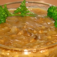 Fry the flour with 1 tablespoon of butter until light brown, then dilute it with 2 cups of hot strained mushroom broth.