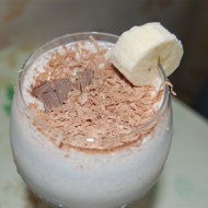 Garnish with grated chocolate and banana.