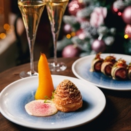 Drunken Pear with Craffin and Gorgonzola Mousse