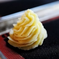 Fill a piping bag with the potato mixture and form duchess potato shapes.