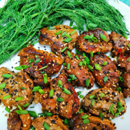 Chop the garlic scapes and sprinkle over the dish.