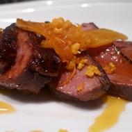 Take the duck breast, season it with salt and pepper. Place a skillet over heat and warm it up. No oil is needed for frying! Place the duck breast in the hot skillet, skin side down. Sear for 12 minutes. The fillet will be medium cooked; if you prefer it well done, you should cook it for an additional 5 minutes.