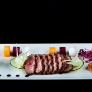 Now you can start cooking the duck. Sear the fillet until golden brown on both sides: first skin side down to render the fat. Cook for no more than three minutes — the meat should remain pink inside.