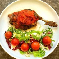 Return to the oven for another 15 minutes. For serving, garnish with salad and cherry tomatoes.