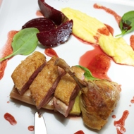 Duck with Rhubarb, Roasted Beets, and Mashed Potatoes