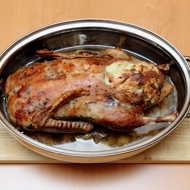 Bake the duck in the oven at 338°F for about 1.5 hours.