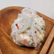 Finely chop the herbs and crab sticks. Combine them in a deep bowl with the pepper.