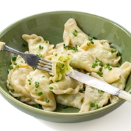 In a large pot, bring water to a boil and add salt to taste. Drop in the dumplings, stir, and once they float to the surface, cook for 3-4 minutes. If the pot is not very large, cook the dumplings in batches.