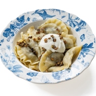 Serve the dumplings with mushrooms alongside sour cream. If desired, garnish with sautéed mushrooms.