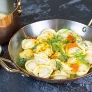 Boil the fillet of any northern fish in salted water. Cool, separate the fish from the bones, and chop. Chop the mushrooms and onion, season with salt, and sauté in vegetable oil. Mix the filling for the dumplings: fish, mushrooms, onion, and spices.