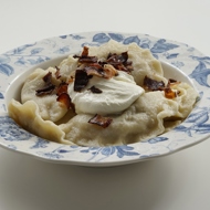 Transfer the cooked pumpkin dumplings to plates and sprinkle with bacon. Serve with sour cream or yogurt.