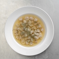 Bring the broth to a boil and add all the dumplings. Once the dumplings float to the top, add the mint.