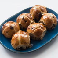 Cross buns are traditionally served on Good Friday in the United Kingdom, Ireland, and Australia. The distinctive feature of these buns is their spiced, aromatic dough, which is complemented by pieces of dark chocolate and raisins. The dough is very easy to work with by hand (so you can manage without a mixer), and wrapping a piece of chocolate in it is a separate pleasure that can be entrusted to children. Important: If the cross disappears during baking, don't worry; it will start to reappear just before the end of the cooking process. It’s best to enjoy these buns on the very first day, but you can prepare them in advance: freeze the freshly baked cooled buns, and when you decide to serve them, reheat them one at a time in the microwave on the defrost setting (one minute will be sufficient). When defrosting, it’s advisable to place a paper towel under the bun to absorb any excess moisture.