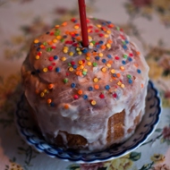 Make a glaze from the egg whites and sugar and decorate the kulich.