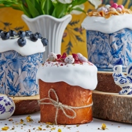 The readiness of the kulich is determined by a thin wooden skewer: insert it into the kulich and pull it out. If it comes out dry, the kulich is ready. If it comes out wet, the dough is not fully baked yet.