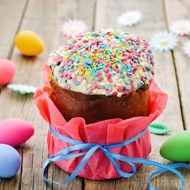 Decorate the finished kulich with icing and decorative sprinkles.