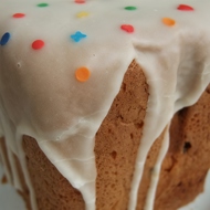 Once completely cooled, place the kulich upright on a plate and cover it with icing made from whipped egg white mixed with a cup of powdered sugar.