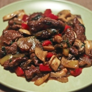 In a very hot skillet, sauté the meat; once you place the meat in the skillet — do not flip, stir, or disturb it! Let it sear for about 1–1.5 minutes before turning.