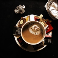 Pour the coffee-chocolate mixture into a preheated cup, add hot milk.
