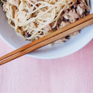 Boil the egg noodles in slightly salted water until al dente. Drain and rinse with cold water.