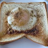 In a skillet, heat oil, place the bread (crust side down), and crack the egg inside. Add salt and pepper.