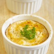 Place everything in a greased mold and pour over the egg whites mixed with 20 ml of milk and the remaining sour cream.