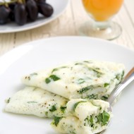 Wash the spinach, dry it, and chop it. Fold the spinach into the egg whites and gently mix to avoid deflating the foam.