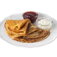 Crepes can be served with sour cream, honey, or jam. Alternatively, you can make a filling (for example, a sweet cottage cheese filling with raisins, or a savory one, similar to that used in stuffed pastries, dumplings, or with cheese and herbs) and wrap it in the crepes, then lightly fry them in butter or ghee.