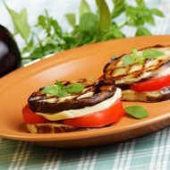 Spread the herb mixture on the bread. Top with grilled eggplants, pieces of mozzarella, and sun-dried tomatoes.
