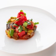 Add the fennel, celery, zucchini, then add the pine nuts, basil, and finally the fried eggplant.