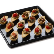 In a bowl, combine the eggplants, feta cheese, tomatoes, nuts, chopped parsley, and garlic pressed through a garlic press. Season with pepper.