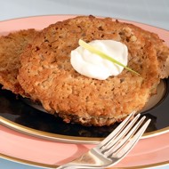 In a skillet, heat olive oil and fry the pancakes, using about 2 tablespoons of batter each, for 5 minutes on each side until golden brown.