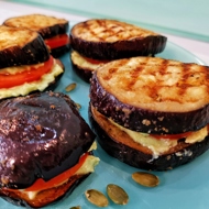Coat the eggplant in oil and flour, then place it on a hot, dry grill pan.