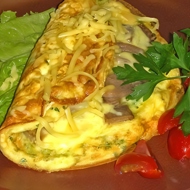 Meanwhile, prepare the second omelette and place it on a serving plate. In the center of the omelette, place the eggplant and tofu mixture, fold the edges of the omelette like an envelope. Garnish with cilantro.