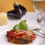 Eggplants Baked with Cheese, Basil, and Pine Nuts