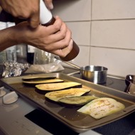 Finely chop the onion and sauté it. Boil the eggs hard.