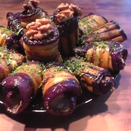 Slice the eggplants lengthwise into strips so that they can be rolled up later.