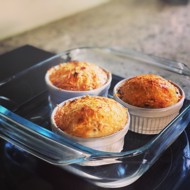 Remove the dish with the ramekins from the oven, use oven mitts or tongs to take out the ramekins, place them on plates (you can place napkins underneath) and serve.