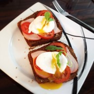 Toast the bread (any kind), place sliced ham on top, and then add the poached egg.