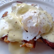 Instead of bacon, you can use salmon. This is an extraordinarily delicious breakfast, brunch, lunch, or brinner. For the full experience, I recommend drizzling a few drops of truffle oil.