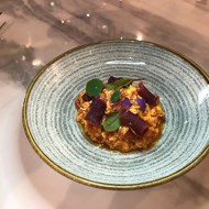 After a while, add the herbs and eggs. Finally, add the basturma, sliced thinly.