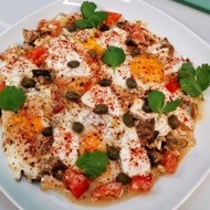 Once the egg whites are set and the cheese has melted, remove from heat and transfer to a plate. Add capers and herbs. Done!