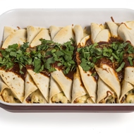 An enchilada is a Mexican version of a wrap (if we take this word in a broad sense). A corn tortilla is filled with a stuffing that must include a chili pepper sauce, and it's also desirable to add fresh hot peppers. The other ingredients and their combinations can vary widely: chicken, vegetables, beef, potatoes, cheese, or even rice.